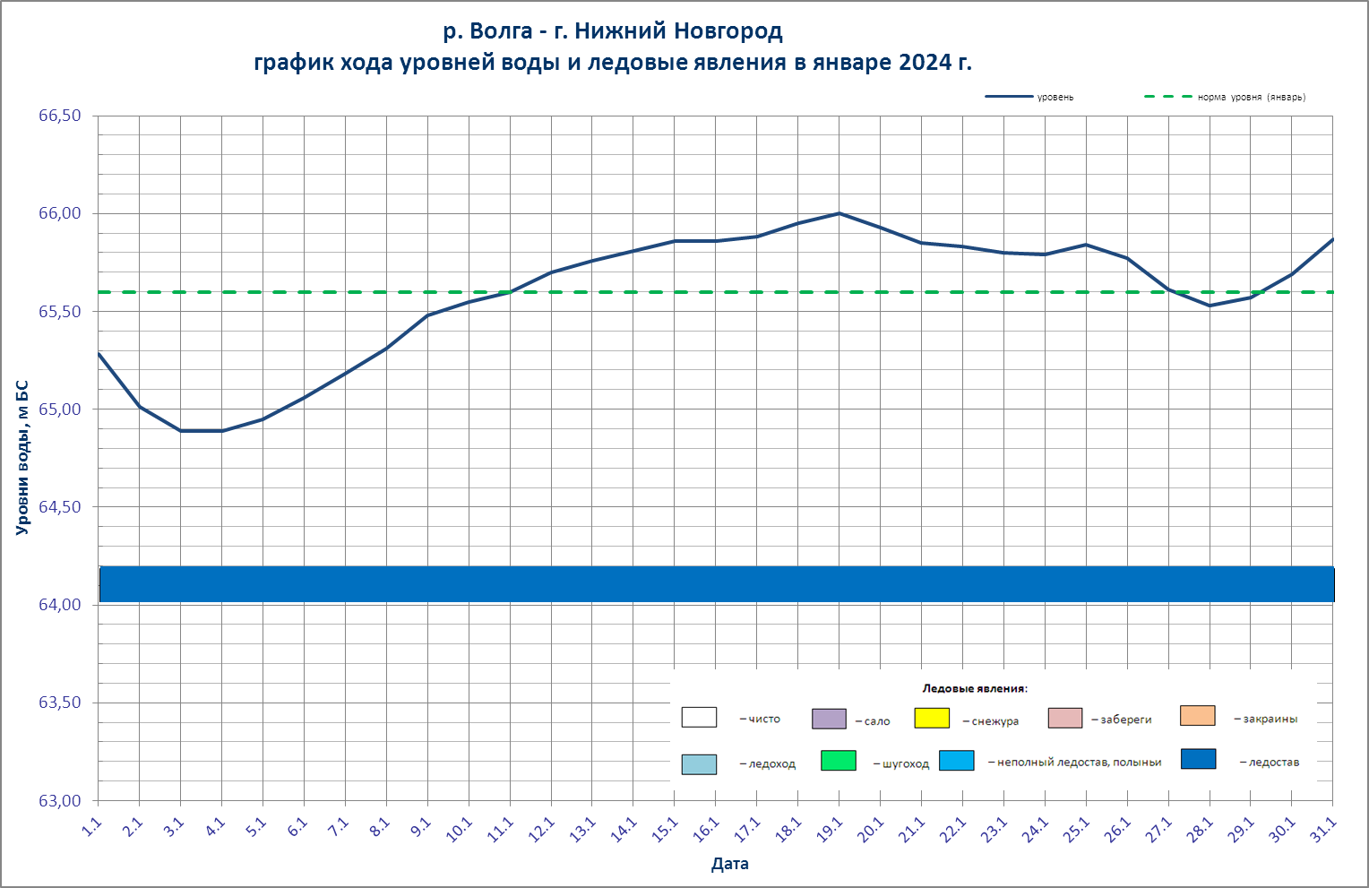 На большинстве рек, Горьковском и Чебоксарском водохранилище (за исключением приплотинной части) наблюдался ледостав, происходило нарастание толщины ледового покрова, толщина льда в основном была около и ниже средних многолетних значений.