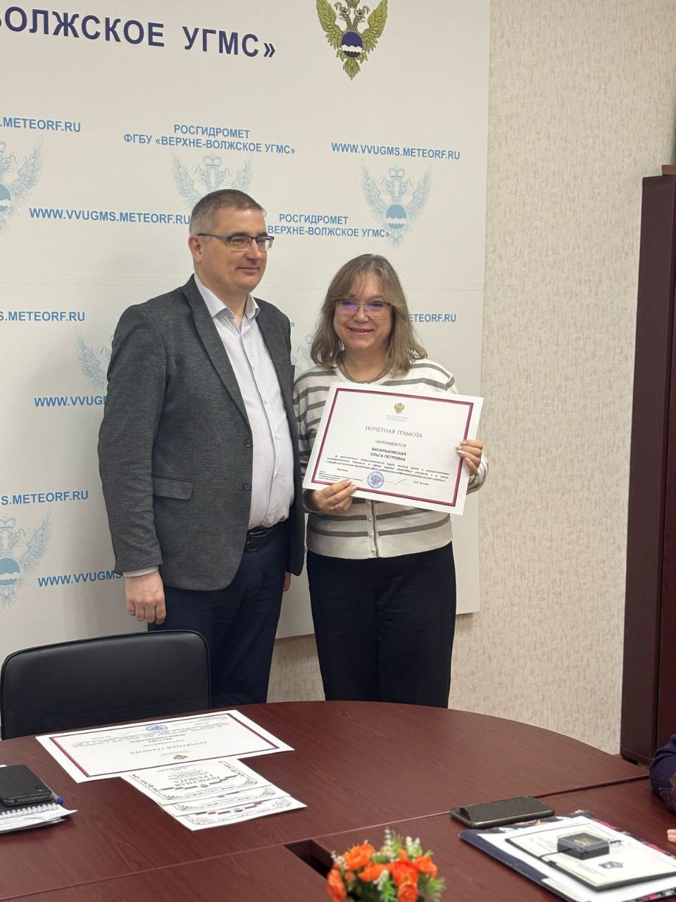 Поздравляем наших коллег с высокими наградами Министерства природных ресурсов и экологии РФ ! За профессионализм, преданность Гидрометслужбе и нашему общему делу - защите природы награждены 6 сотрудников ЦМС. Нагрудный знак " Отличник охраны природы" вручены главному инженеру ЦМС Месяцевой Ольге и начальнику ЛФХМ Шагаровой Лилии. Почетные грамоты Министерства получили Васильковская Ольга, начальник РРЛ и Курнакова Елена, ведущий специалист отдела информации. Грамотой Росгидромета награждена Белова Ирина, руководитель группы информации. 50 лет трудового стажа у Антиповой Любови, бессменного техника РРЛ, отмечены Благодарностью Росгидромета. Спасибо дорогие труженицы за ваш результативный и красивый труд! Начальник ЦМС Андриянова Н.В